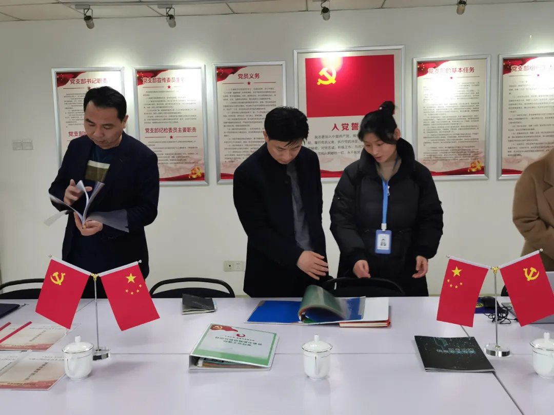 领导一行首先参观了公司的办公环境,随后来到党员活动室,参观了党支部党建工作宣传栏,查看了tyc1286太阳成集团党建小报,了解在册党员情况,为公司党建工作提出了指导性意见。?