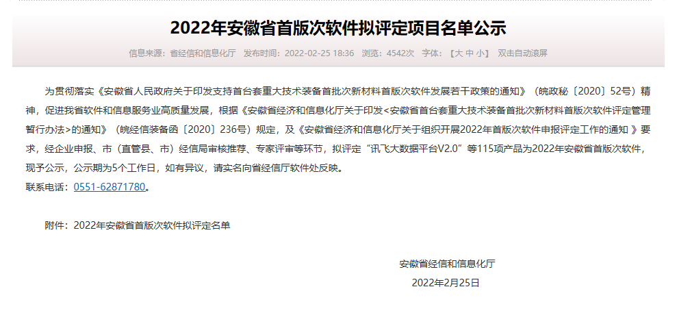2022年2月25日,安徽省经济和信息化厅公布了2022年安徽省首版次软件项目名单,经过公示,我公司自主研发产品入选。?首版次软件产品是指企业通过自主开发,其功能或性能有重大突破,在该领域具有技术领先优势或者打破市场垄断,拥有自主知识产权的同产品名称、同一版本号的软件产品。? ?? 安全保密教育平台V1.0为我公司自主研发的产品,可运行于Windows、Linux、Centos系统平台上,使用C#语言开发,应用于保密培训、考试领域,具有课程管理、知识点管理、学习课件管理、题型管理、试卷设置、考试管理、考试记录、员工管理、数据统计等功能点。目前面向市场投入使用。