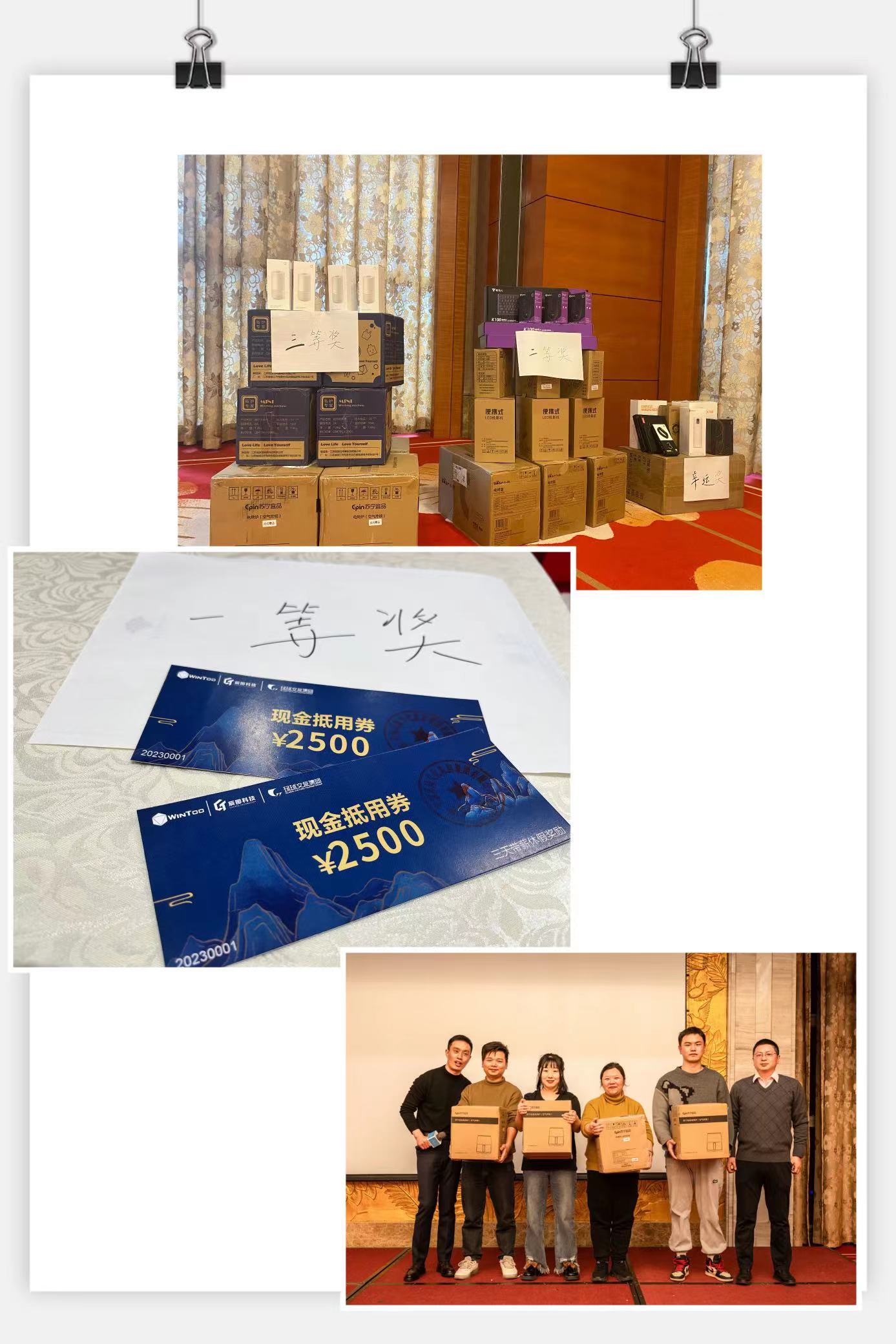 ? ? ?晚18点,公司总经理郑美惠女士的新年祝酒词拉开了晚宴篇章。由公司员工用心准备的精彩节目轮番上演,掌声与歌声混成一片,欢乐异常。晚宴中的抽奖环节和一轮轮红包雨,惊喜连连,将晚会的欢乐气氛推向一个又一个高潮。