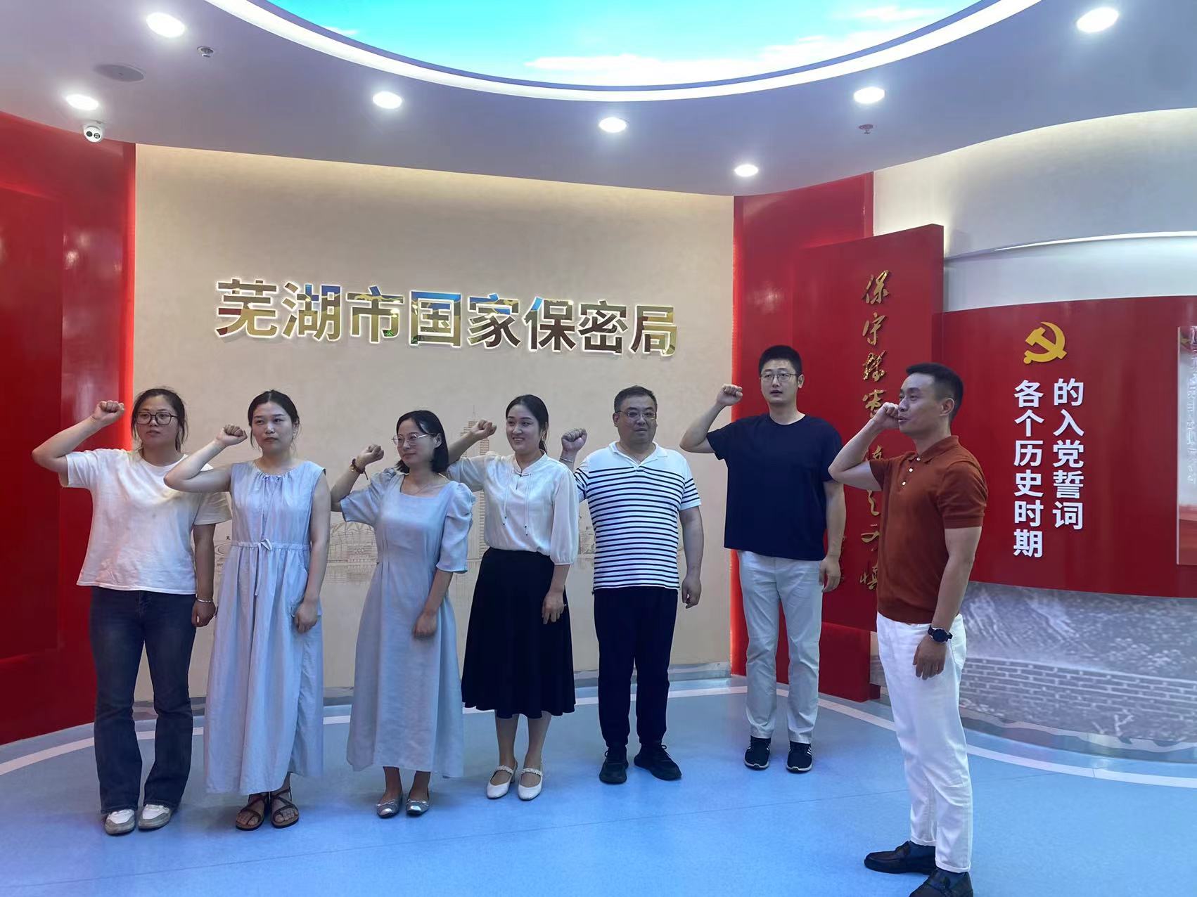 2024年是中国共产党成立103周年,革命薪火永相传,为不断增强党员的凝聚力和战斗力,发挥好党员的先锋模范作用。6月11日下午,安徽tyc1286太阳成集团信息技术有限公司的全体党员以及部分保密人员,前往芜湖市国家保密局,开展了“迎七?一走进芜湖市保密教育基地”主题党日活动。