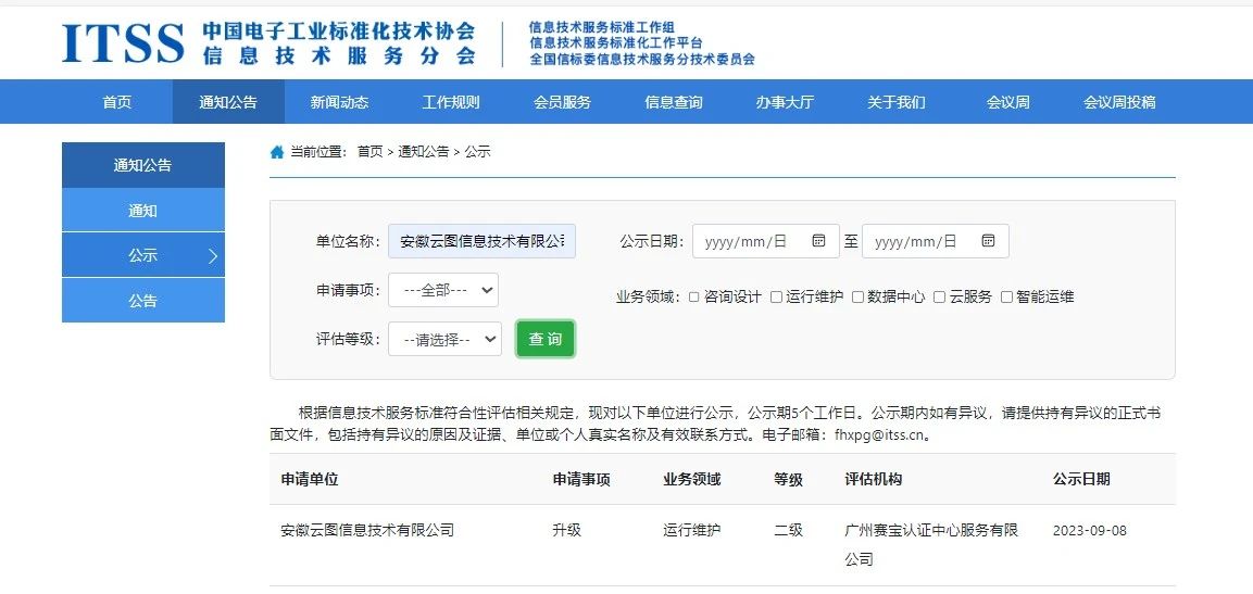 tyc1286太阳成集团头条 | 安徽tyc1286太阳成集团顺利升级运维服务能力成熟度(ITSS)二级符合性认证
